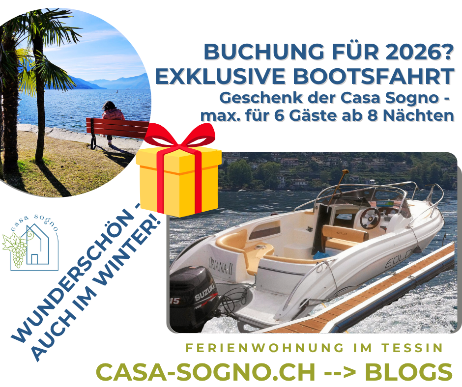 Buchen Sie mehr als 7 Nächte in der Casa Sogno, geniessen Sie eine kostenlose Bootsfahrt mit Martin, unserem erfahrenen Kapitän, der den Lago Maggiore seit über 40 Jahren wie seine Westentasche kennt.